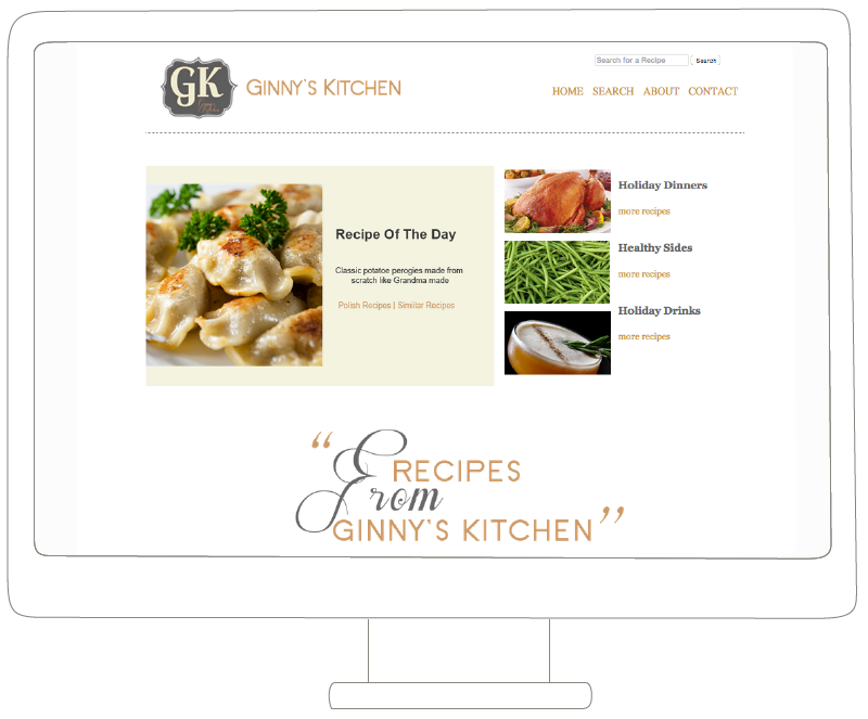 Ginny's Kitchen is a site I created in memory of my Grandmother or my Busia to share her Swedish and Polish family recipes. I used MySQL along with a database to search Ginny's recipes. I wanted the design to feel like my Busia's kitchen. I began by creating a logo with a font and shape she would like.