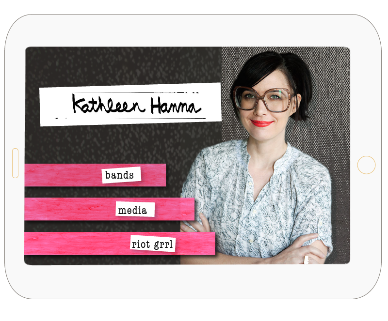 I wanted this app to have a grungy feel to reflect what "Riot Grrl" bands and magazines looked like in the 90's. I used a "Marvel Effect" coupled with stop motion for the splash intro to setting the look for this app. Style boards where key in planning out different stop motion transitions through out the app.